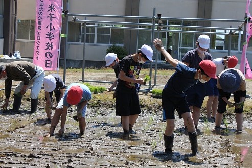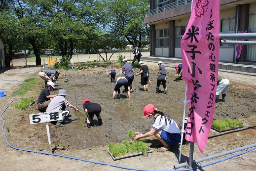 絶好の田植え日和となりました。敷地内にある学校田で、転びそうになりながらも、がんばって植えました。とってもよい体験ができたと思います。御協力してくださった関係者の皆様、本当にありがとうございました。