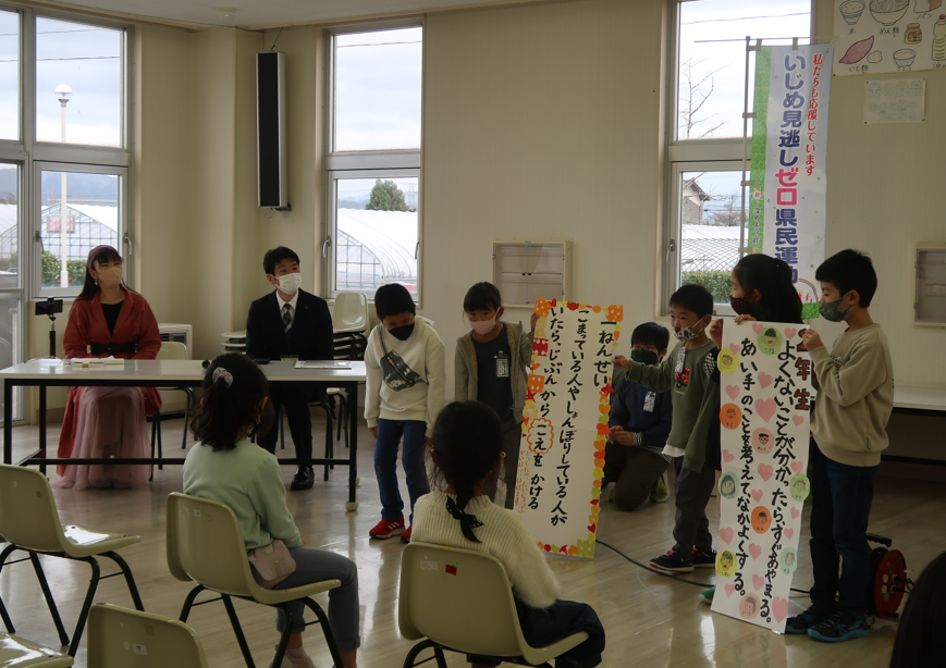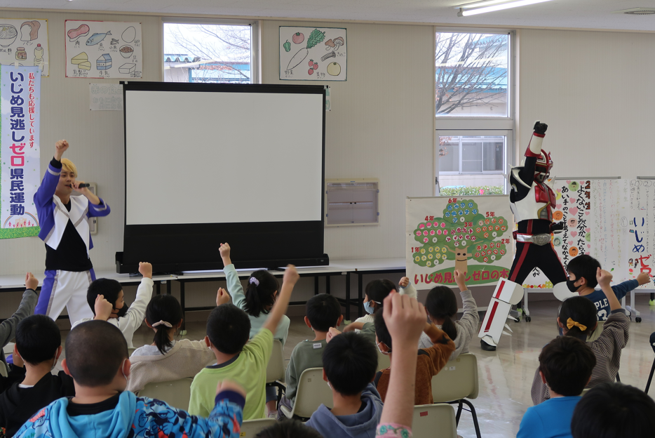 本日、「いじめ見逃しゼロキャラバン」の皆様をお招きし、いじめ見逃しゼロ集会を行いました。新潟県のローカルヒーローとして活躍されている「超耕21ガッター」を講師に迎えて、いじめについてお話ししてくださりました。子どもたちは、ヒーローのお話に真剣に耳を傾けるとともに、ヒーローの迫力に目を輝かせていました。集会では、各クラスの「いじめ見逃しゼロ宣言」も発表しました。いじめをしない、許さない、見逃さないという意識を醸成する、有意義な時間になりました。