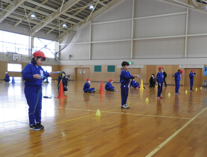 本日、校内なわとび記録会を行いました。1・4年生、2・5年生、3・6年の部ごとに、一人3種目挑戦しました。子どもたちは、自分のもてる力を十分に発揮し、全力を尽くしていました。保護者の皆様、温かいご声援をありがとうございました。