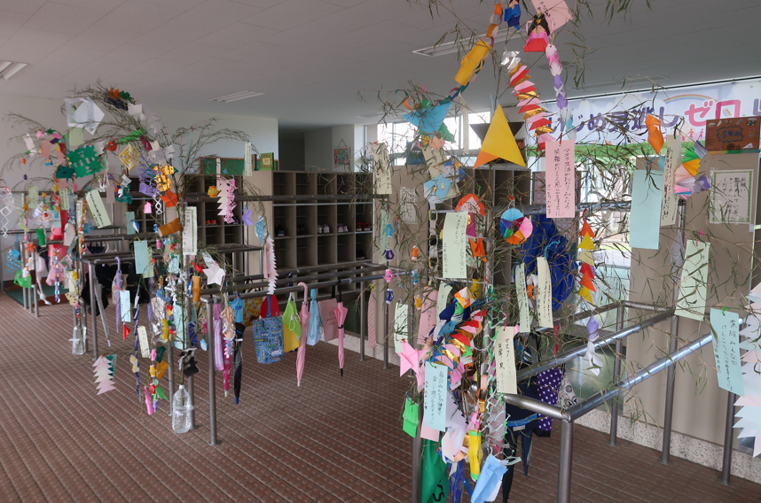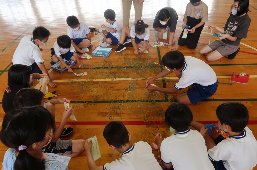 全校で七夕飾りを作りました。なかよし班毎に竹に飾り、児童玄関に設置してあります。来週6日(水)の学習参観日の際にぜひご覧ください。お待ちしております。