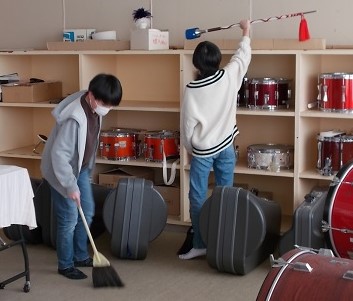 今日は、音楽室の掃除を行いました。6年間お世話になった学校のために、一生懸命にがんばって仕事をしていました。今後は、他の教室もきれいにする予定です。ありがとう、6年生!