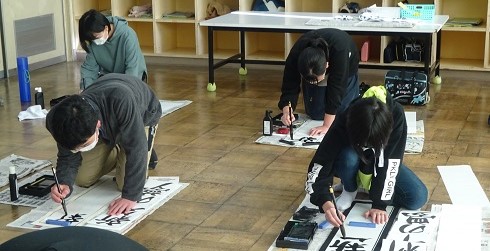 12日に、書き初め大会を行いました。1,2年生は、硬筆書写、3〜6年生は、新聞紙を敷いて、床で字を書きました。みんな真剣で、とてもいい字が書けたと思います。